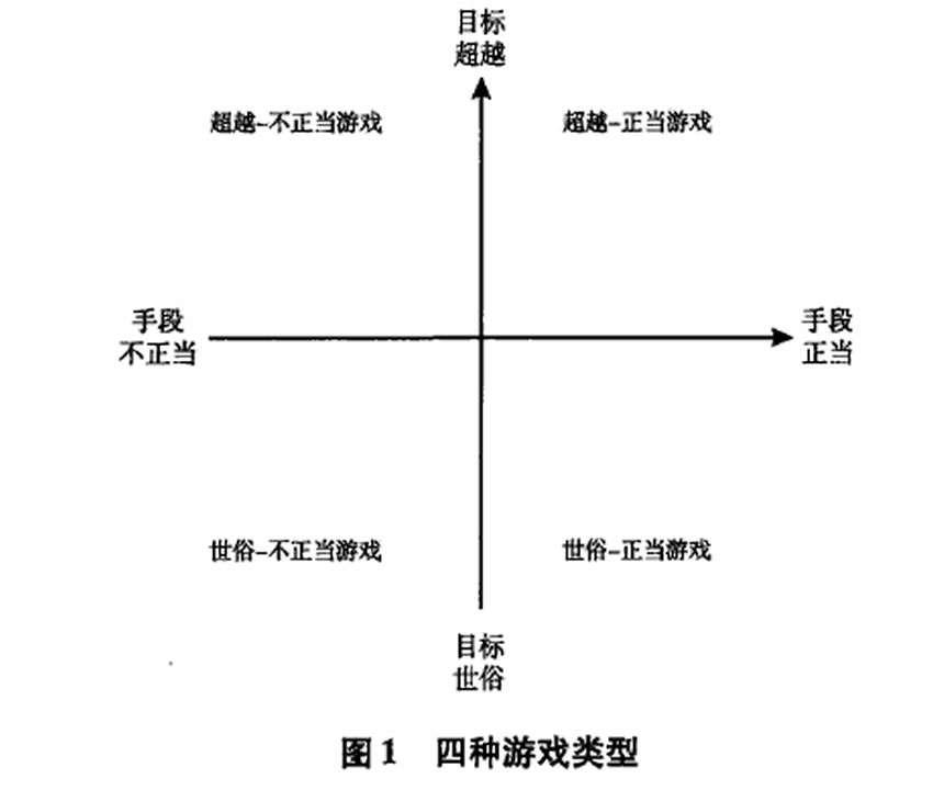至此,我们依托原有的游戏理论,讲述了一个有关“混”的理论故事,构建了一个游戏象限,完成了对原有游戏理论的迁移和检验,并把它作为自己解释“混”这一问题的理论框架。上图展示的是,论文作者从理论层面实际归纳的四种游戏类型。这也提醒我们,寻找理论时,并不是所有时候都像“提出假设”那样,可以找到直接可用的各种变量。很多时候,我们需要在既有理论基础上,继续思考,把原有理由与自己的研究情境相结合,创造性地构建出一个新的解释框架。 |